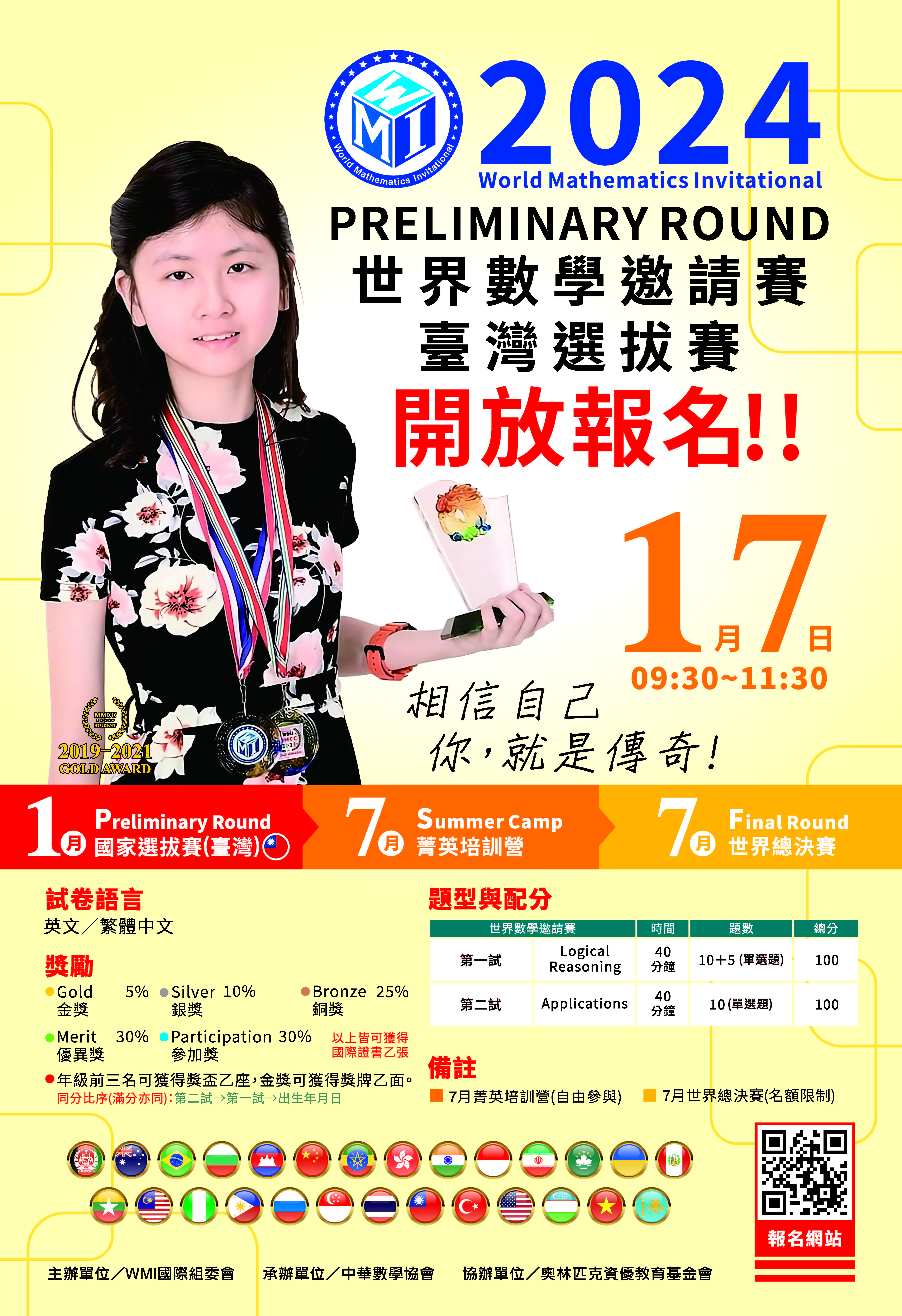 WMI世界數學邀請賽總決賽資格採邀請制,獲金、銀、銅獎的選手依照獎項順序,有資格被邀請於 7 月參加WMI 世界總決賽。