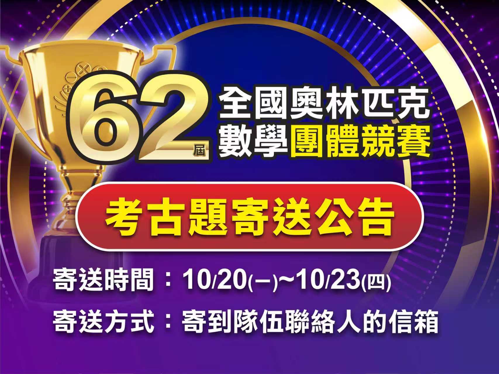 【第62屆全國奧林匹克數學團體競賽】報名隊伍+考古題公告