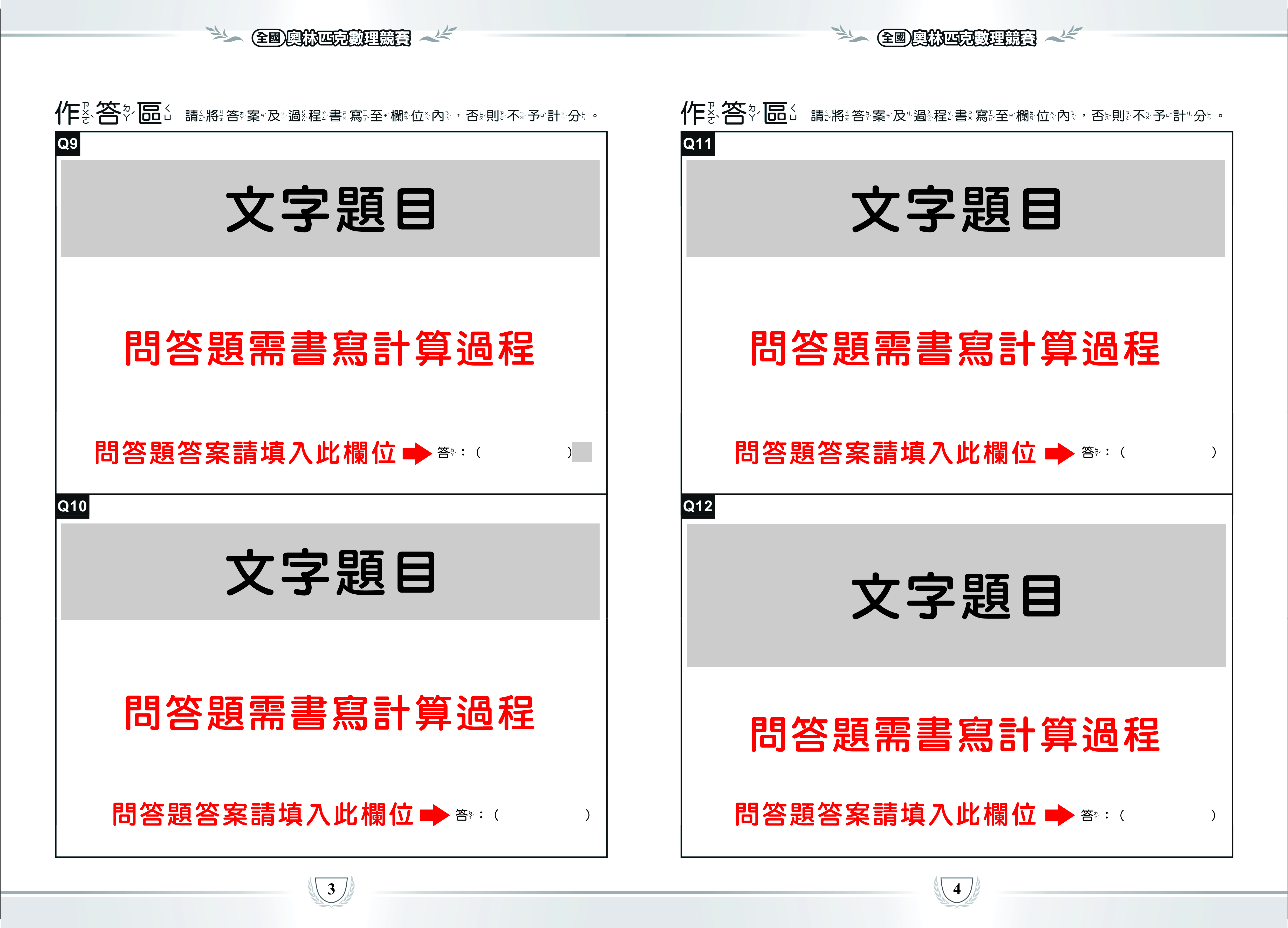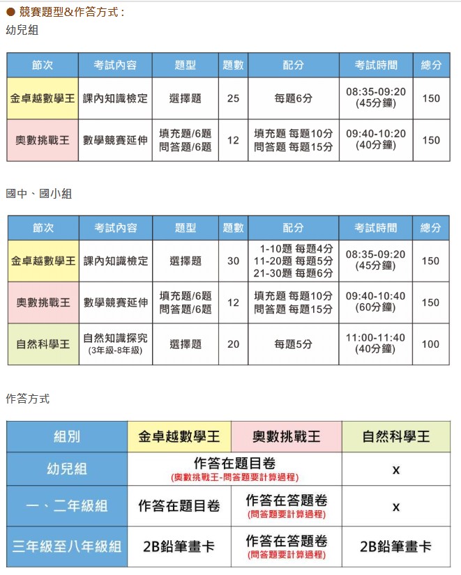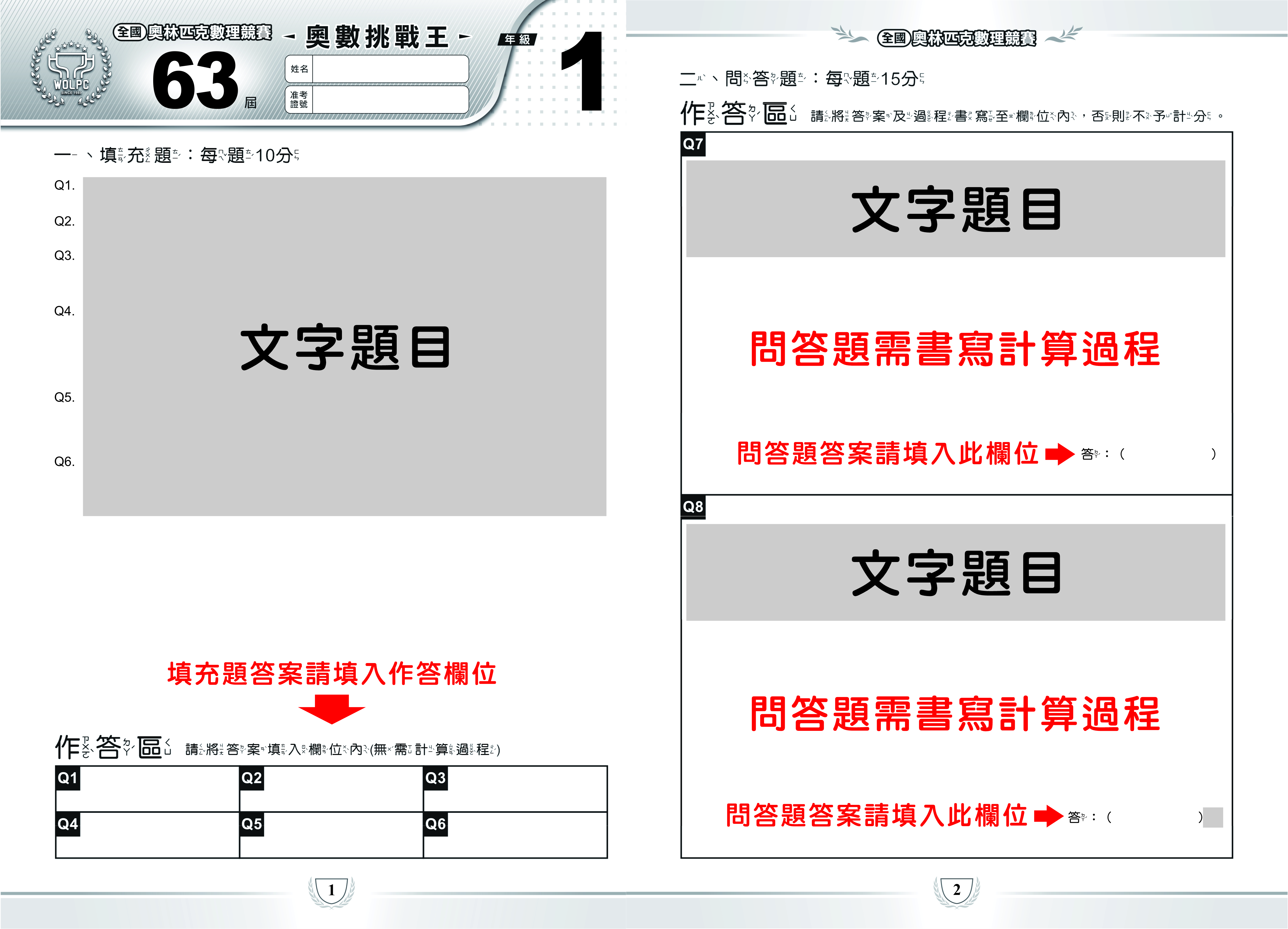 ★【 63 屆奧林匹克數理競賽】考試資訊公告─奧數挑戰王答題卷