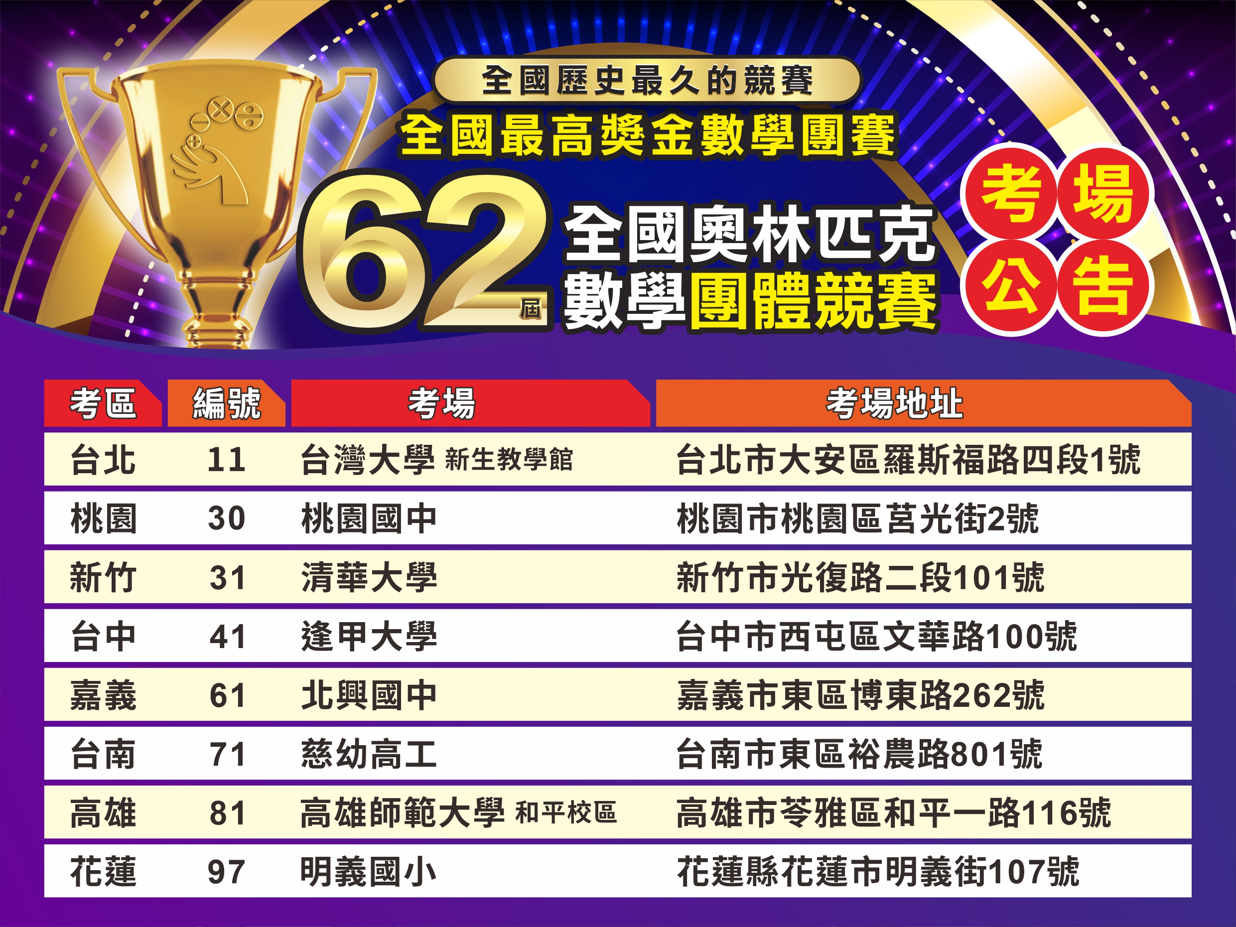 62屆奧數團賽簡章置於文章最末,欲參閱,請下拉至底查看