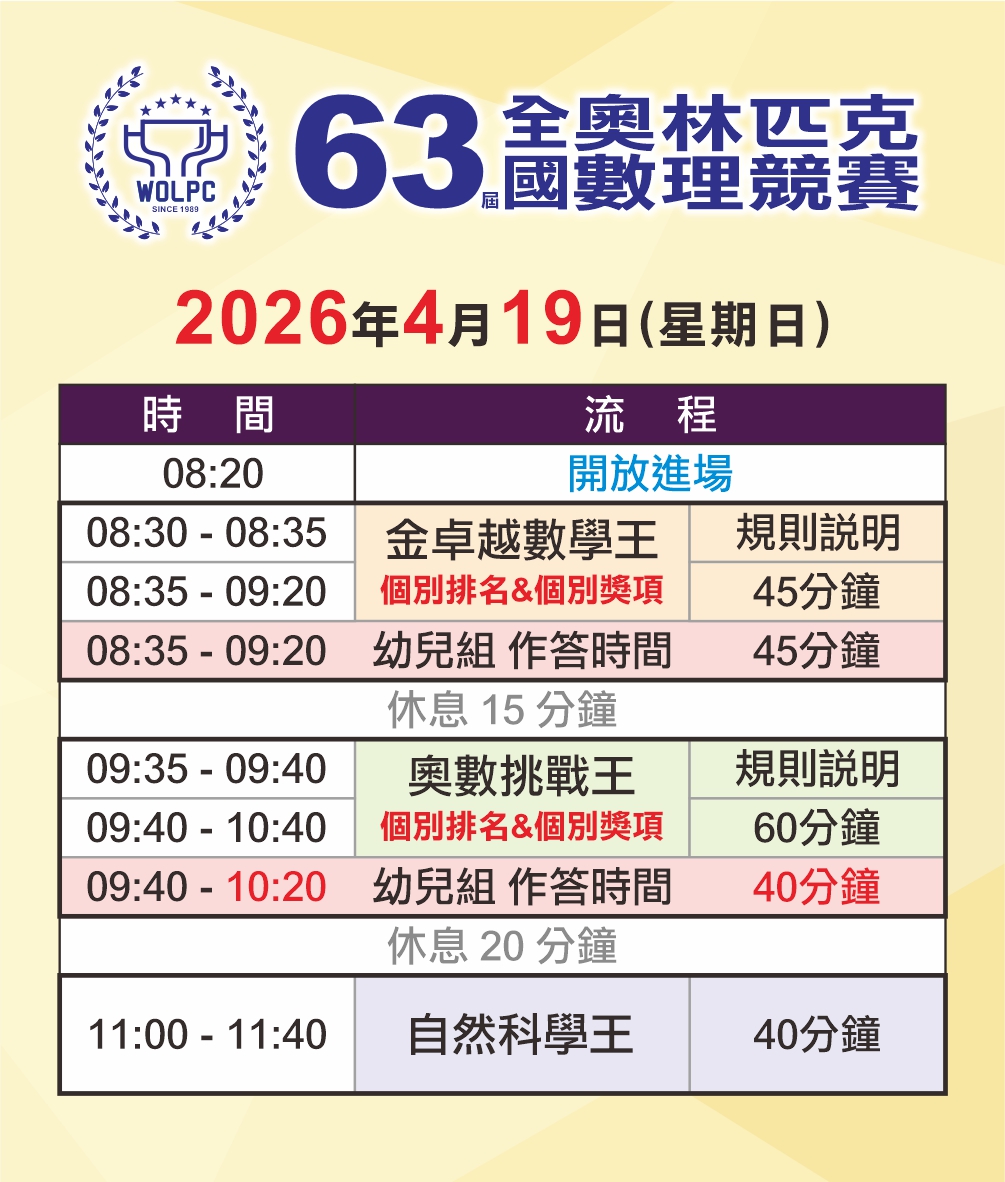 提醒參與第63屆全國奧林匹克數理競賽的考生與家長