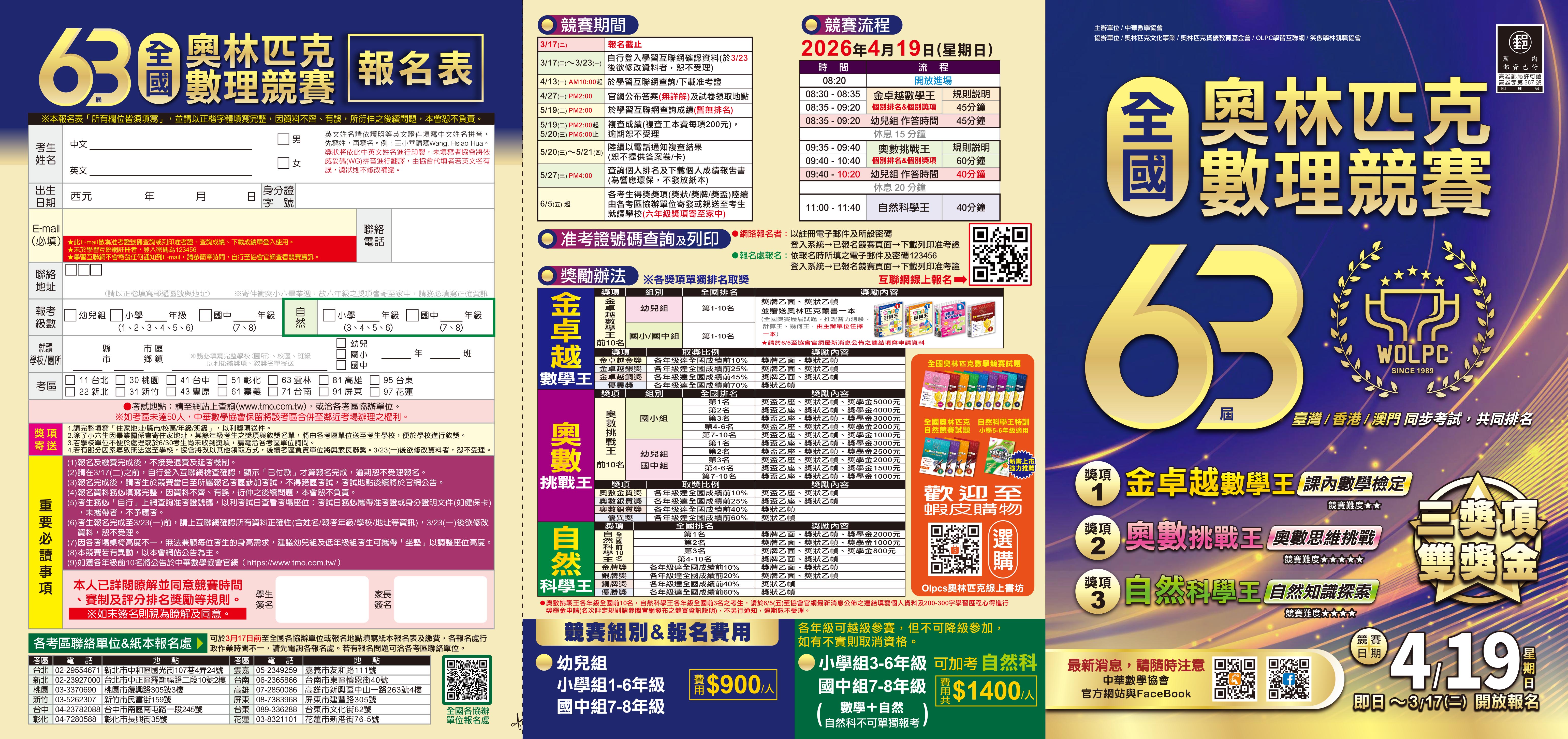 63屆奧林匹克(數理)競賽簡章置於文章最末,欲參閱,請下拉至底查看