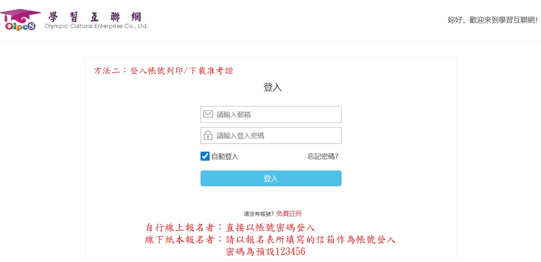 線下紙本報名者:請以報名表所填寫的信箱作為帳號登入