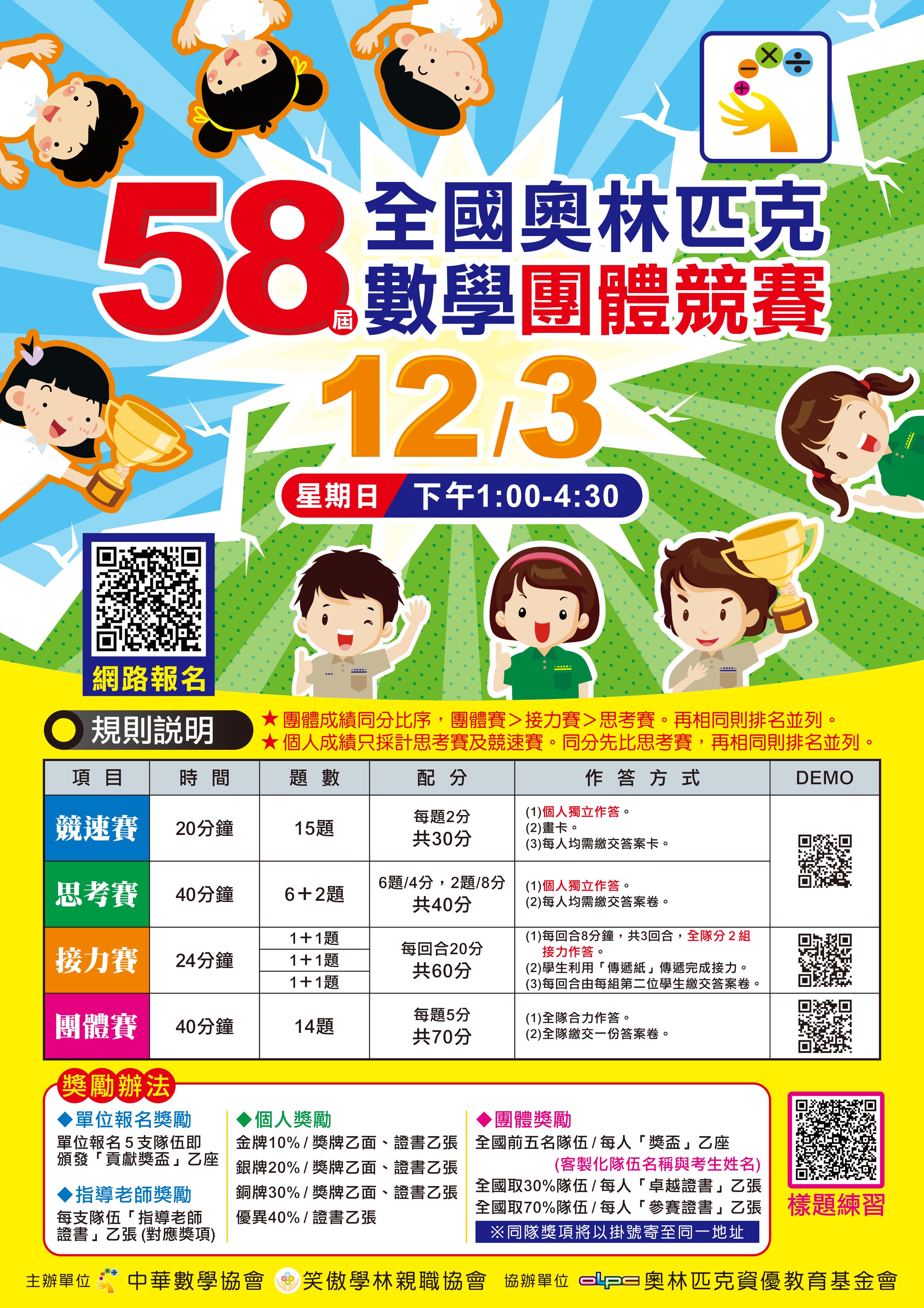 58屆奧數團賽簡章置於文章最末,欲參閱,請下拉至底下載