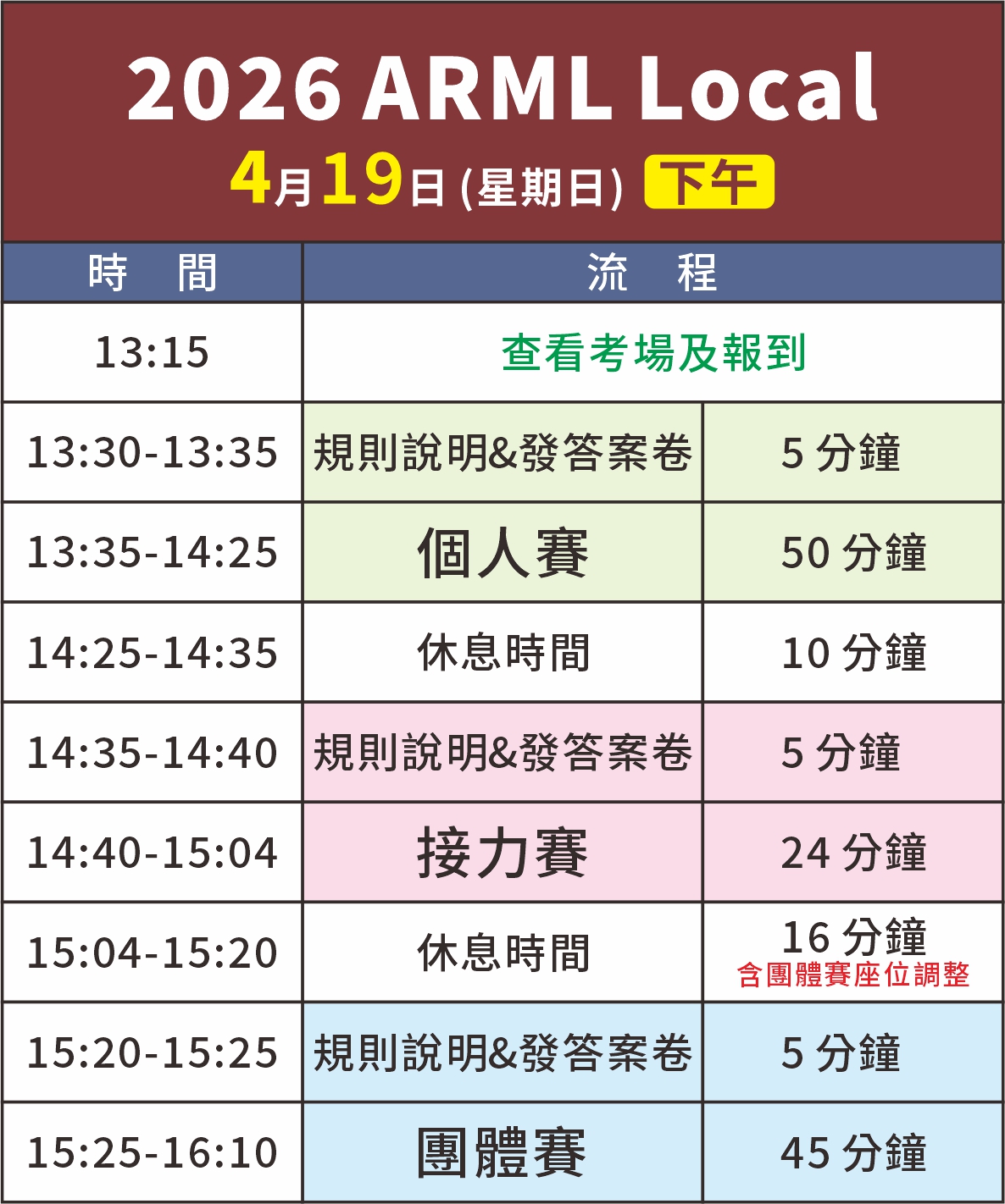 ● 競賽日期:04 / 19 (日)下午1:15~4:10
