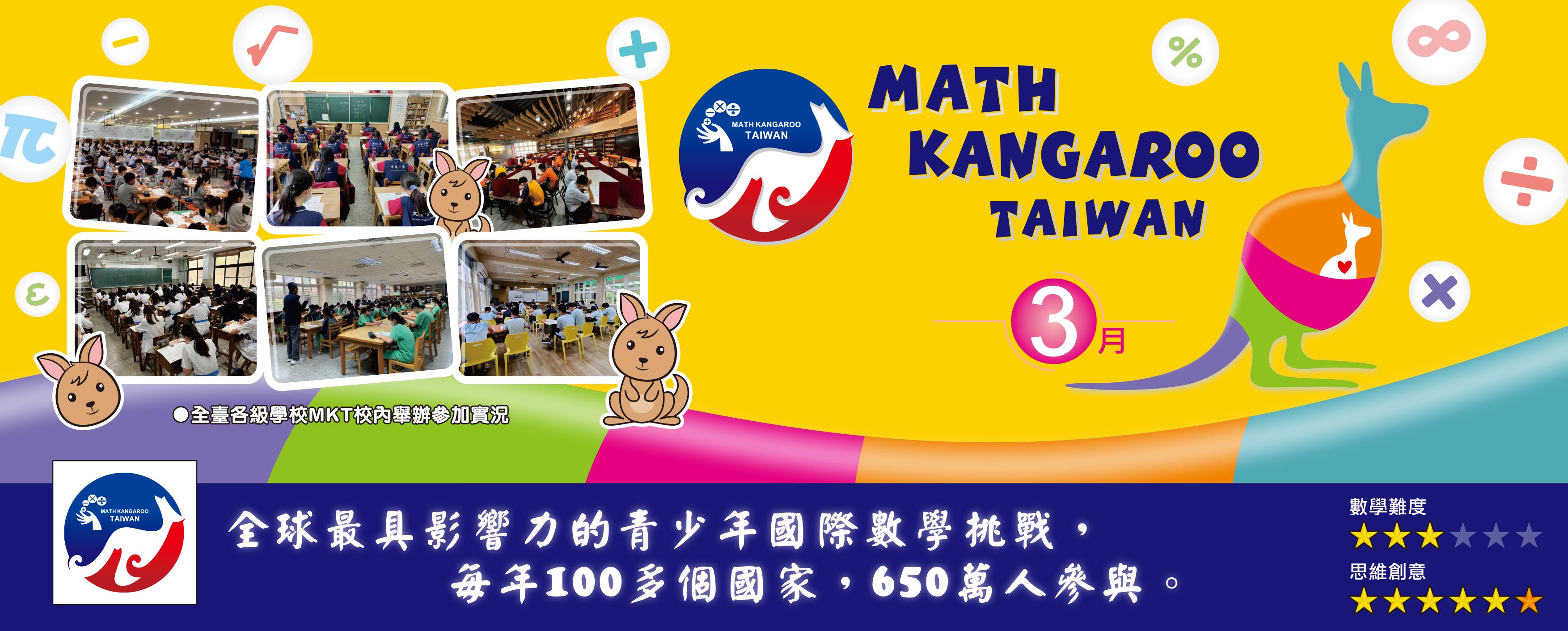 ※MKT 袋鼠數學能力測驗由中華數學協會取得法國 AKSF 授權,並授權給全國各級學校招集該校學生於期間在校內進行。